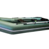 Лодка имеет стационарный транец под мотор, мощность которого достигает 6 л.с. Ее неподражаемые мореходные качества, легкий ход под веслами и мотором, а также небольшая масса в сочетании с компактной упаковкой, привлекают массу покупателей. Для компании из двух или трех человек такой водный транспорт подойдет как нельзя лучше. Крепкий и устойчивый пол из 9-миллиметровой водостойкой фанеры удачно дополняет общую идеальную картину.