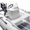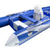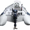 Лодка РИБ Адмирал 410 подойдет под мотор мощностью до 40 л.с. Поставляется в комплекте с носовым и кормовым рундуками, в которых можно разместить необходимое снаряжение, а также с удобной консолью, позволяющей установить штурвал для управления судном и включающей в себя дополнительное место для пассажиров на борту. Вместимость — 5 человек. Корпус модели 410 полностью выполнен из стеклопластика, баллоны лодки надувные и разделены на 5 герметичных отсеков, повышающих безопасность и плавучесть судна.